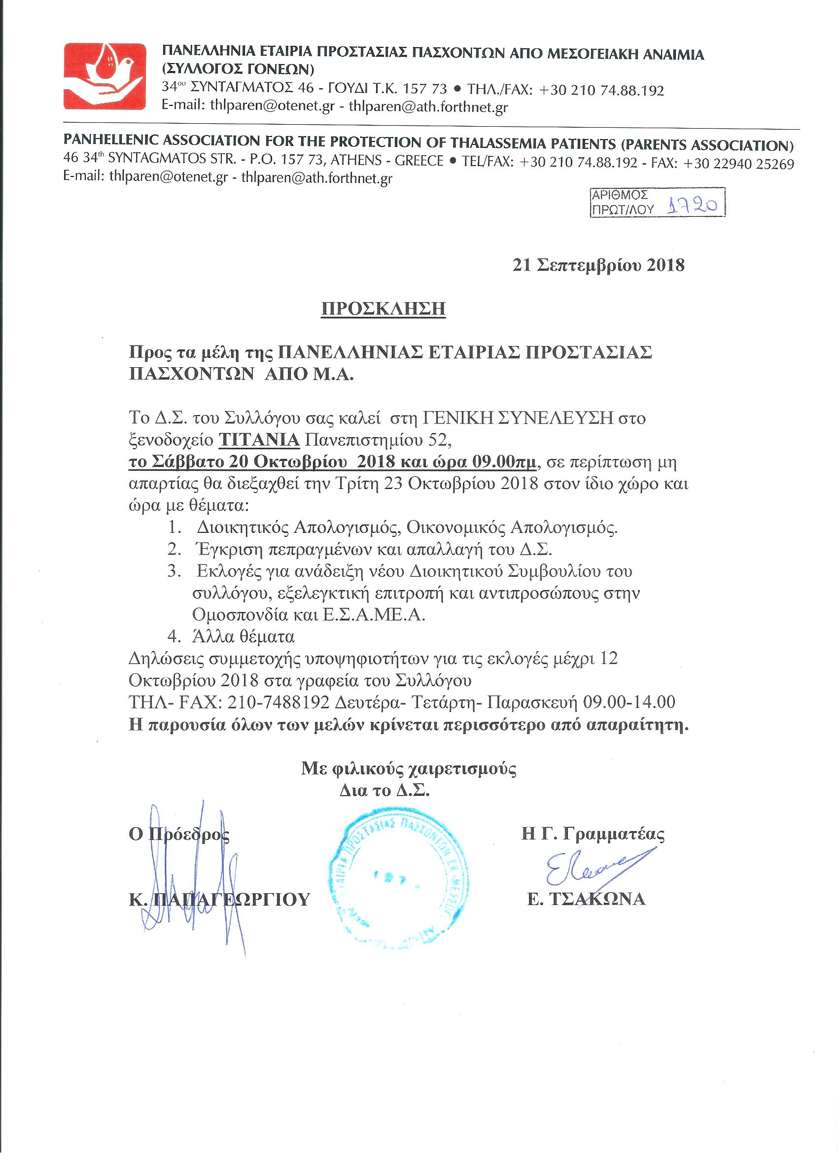 Για την ΠΡΟΣΚΛΗΣΗ για την ΓΕΝΙΚΗ ΣΥΝΕΛΕΥΣΗ πιέστε εδώ...