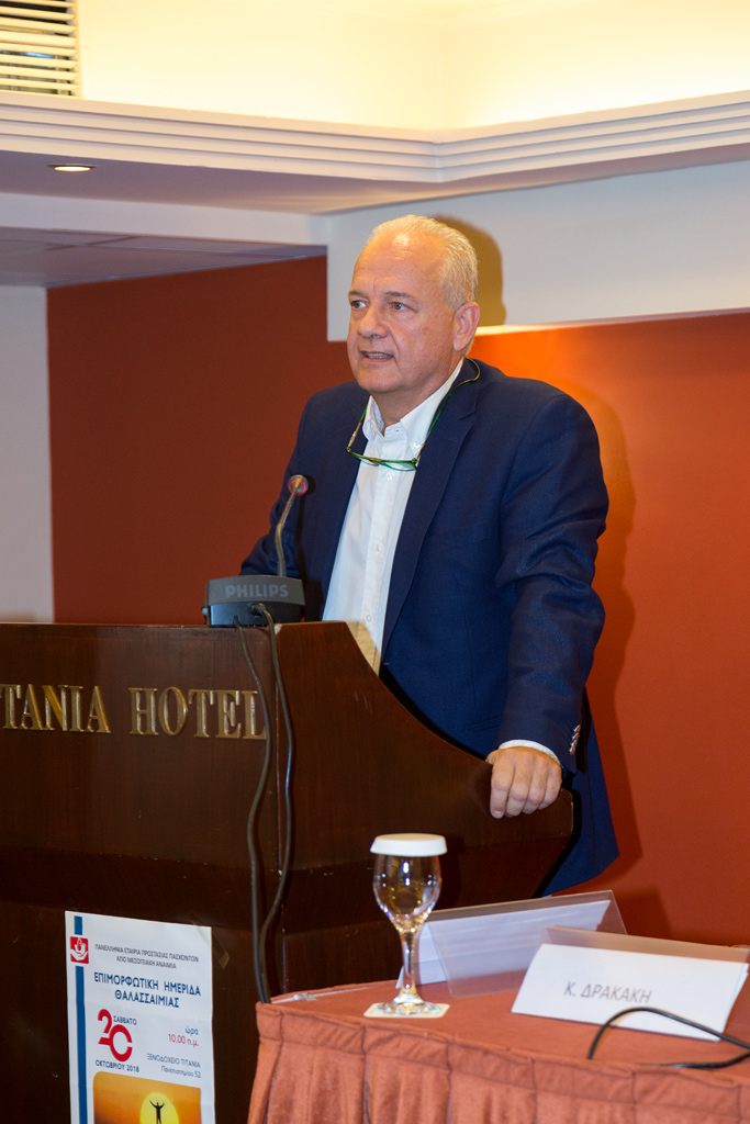 Η ομιλία του κ. Βερδούκα που ακολούθησε ήταν γύρω από τη συνδυαστική θεραπεία αποσιδήρωσης και το πόσο σημαντικό είναι το φρέσκο αίμα για τη θεραπεία των Θαλασσαιμικών